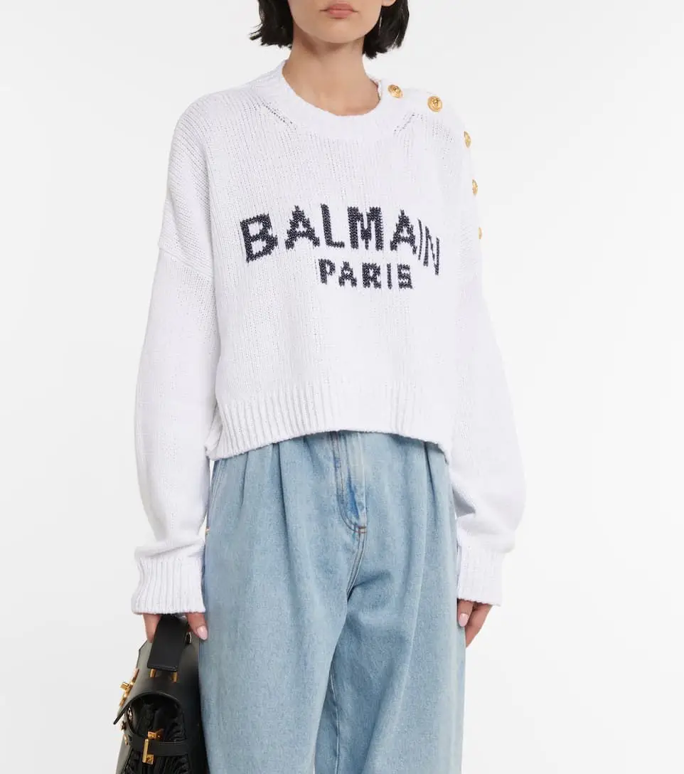 Designed for the modern icon, this sweatshirt features the instantly recognizable Balmain motif, a symbol of Parisian elegance and edgy design. The cropped silhouette offers a contemporary, flattering fit that pairs seamlessly with high-waisted trousers, tailored skirts, or your favorite denim.