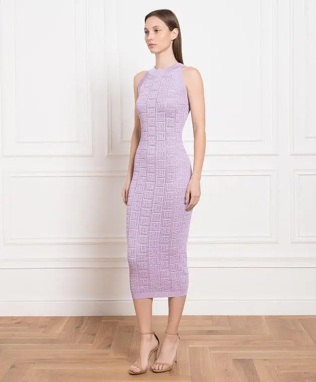 Embody the pinnacle of luxury and avant-garde design with the BALMAIN Monogram Openwork Knit Midi Dress. This exquisite piece is a testament to the house’s mastery of tailoring and its bold, contemporary vision.