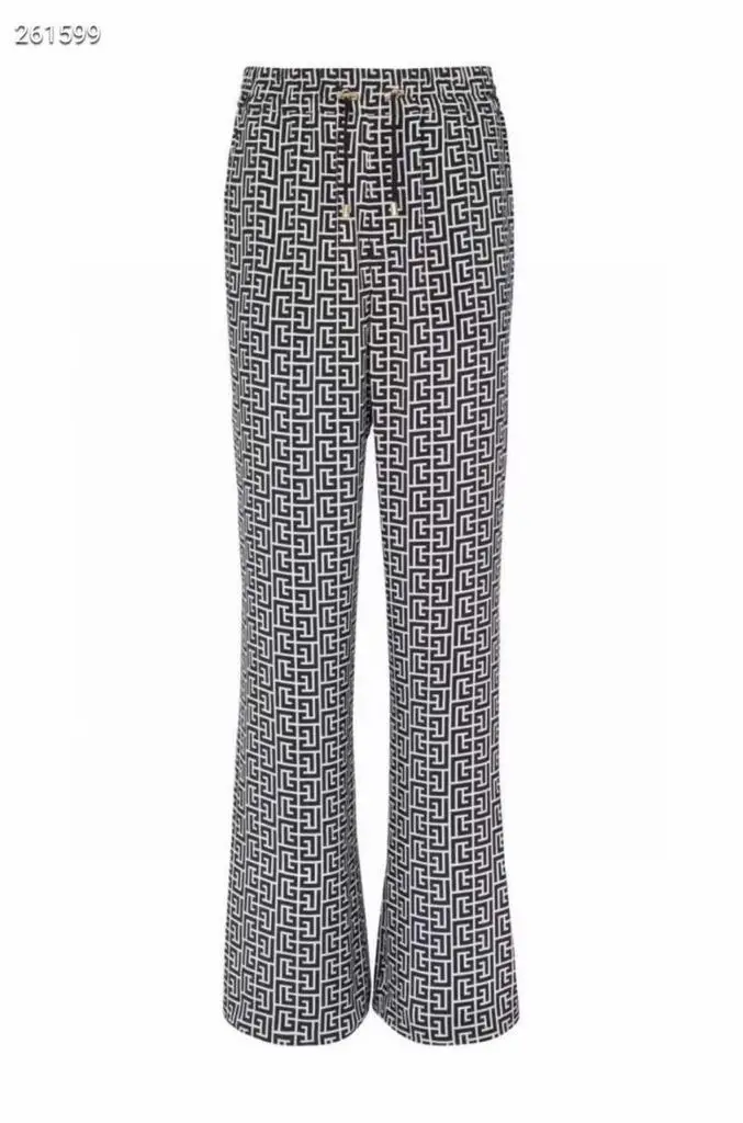 The bold, all-over Balmain monogram print makes an immediate and powerful statement, while the exaggerated wide-leg silhouette offers a modern, fluid drape that elongates the frame for a commanding presence. Tailored from a substantial, high-twist fabric, they maintain their impeccable structure and comfort throughout the day.