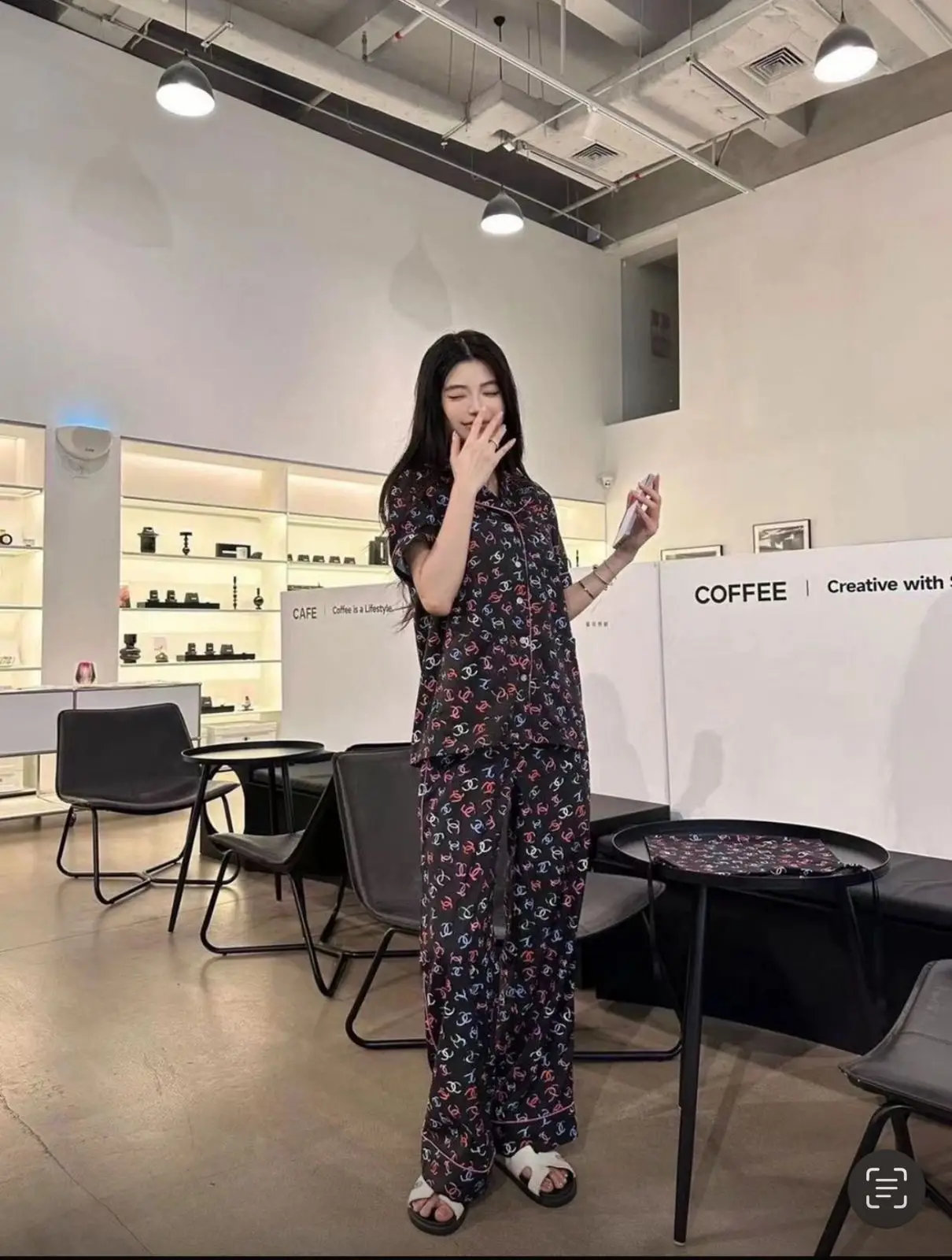 Indulge in the ultimate expression of luxury and leisure with this exquisite CHANEL floral print pyjama set. Meticulously crafted to super master quality standards, this set transcends sleepwear to become a statement of refined elegance.