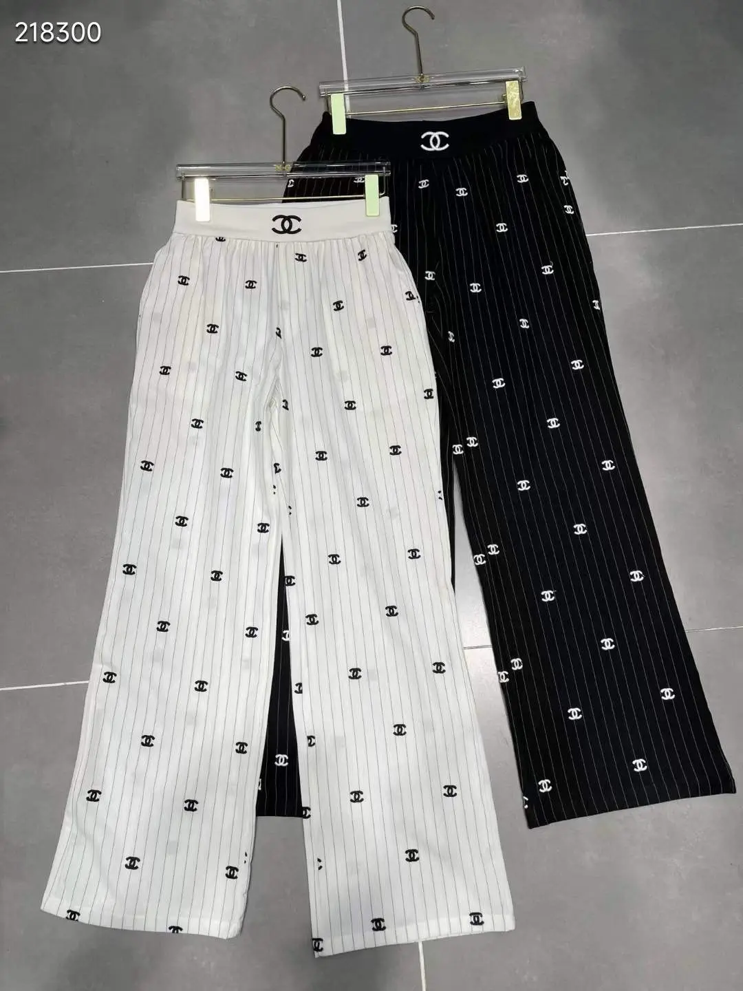 The defining feature is the impeccably wide leg, sweeping from a high waist to a graceful, floor-skimming hem. This creates a powerful, elongated line that moves with a cinematic fluidity. The front is adorned with the iconic, perfectly proportioned CC logo buttons, a subtle yet unmistakable signature of the House. Finished with precisely sharpened creases and a concealed side-zip closure for a clean, uninterrupted flow, these palazzo pants are the foundation of a truly elevated wardrobe.