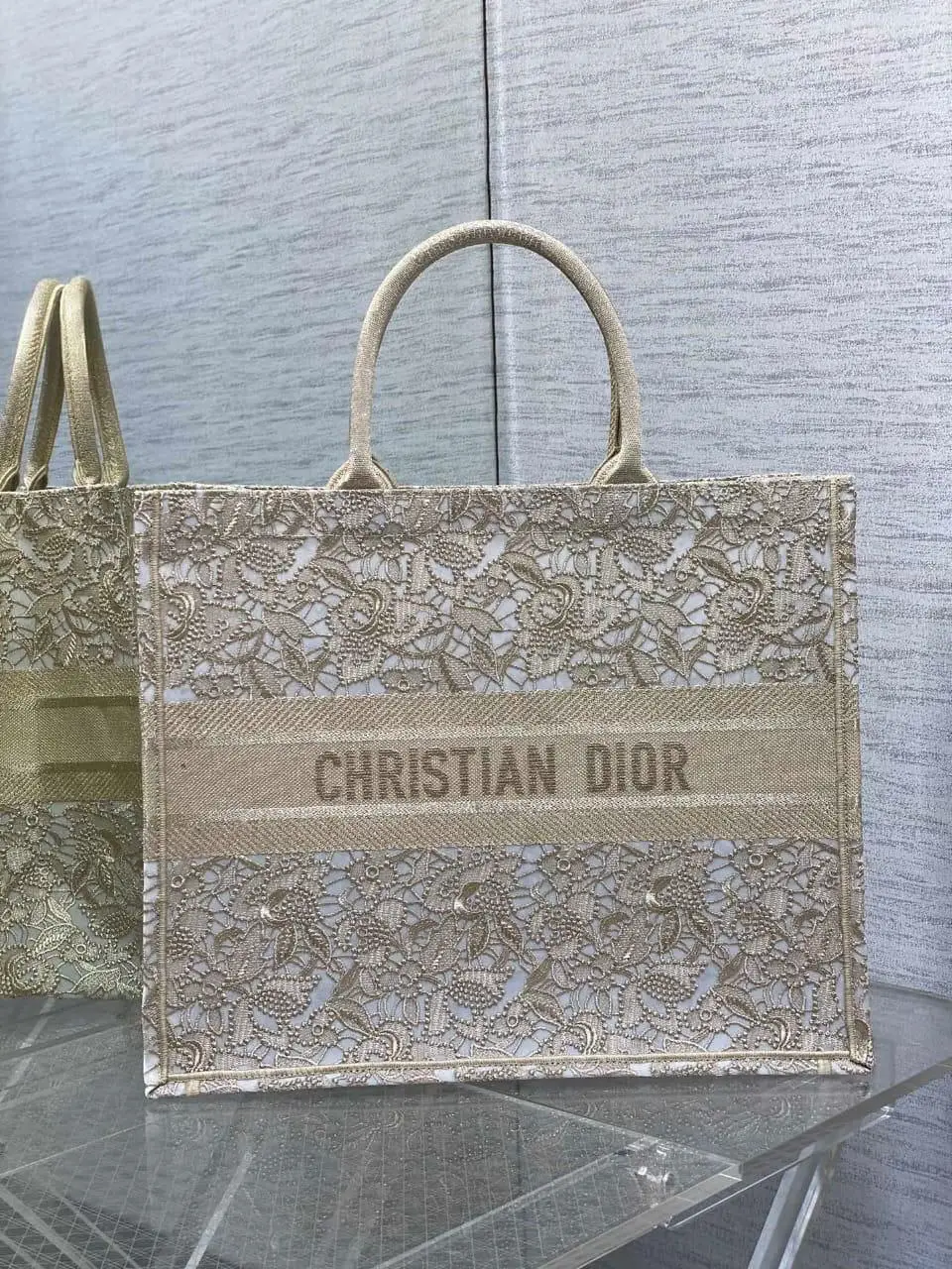 design women cd large or book tote gold tone d lace embroidery macrame effect.webpDior Book Tote