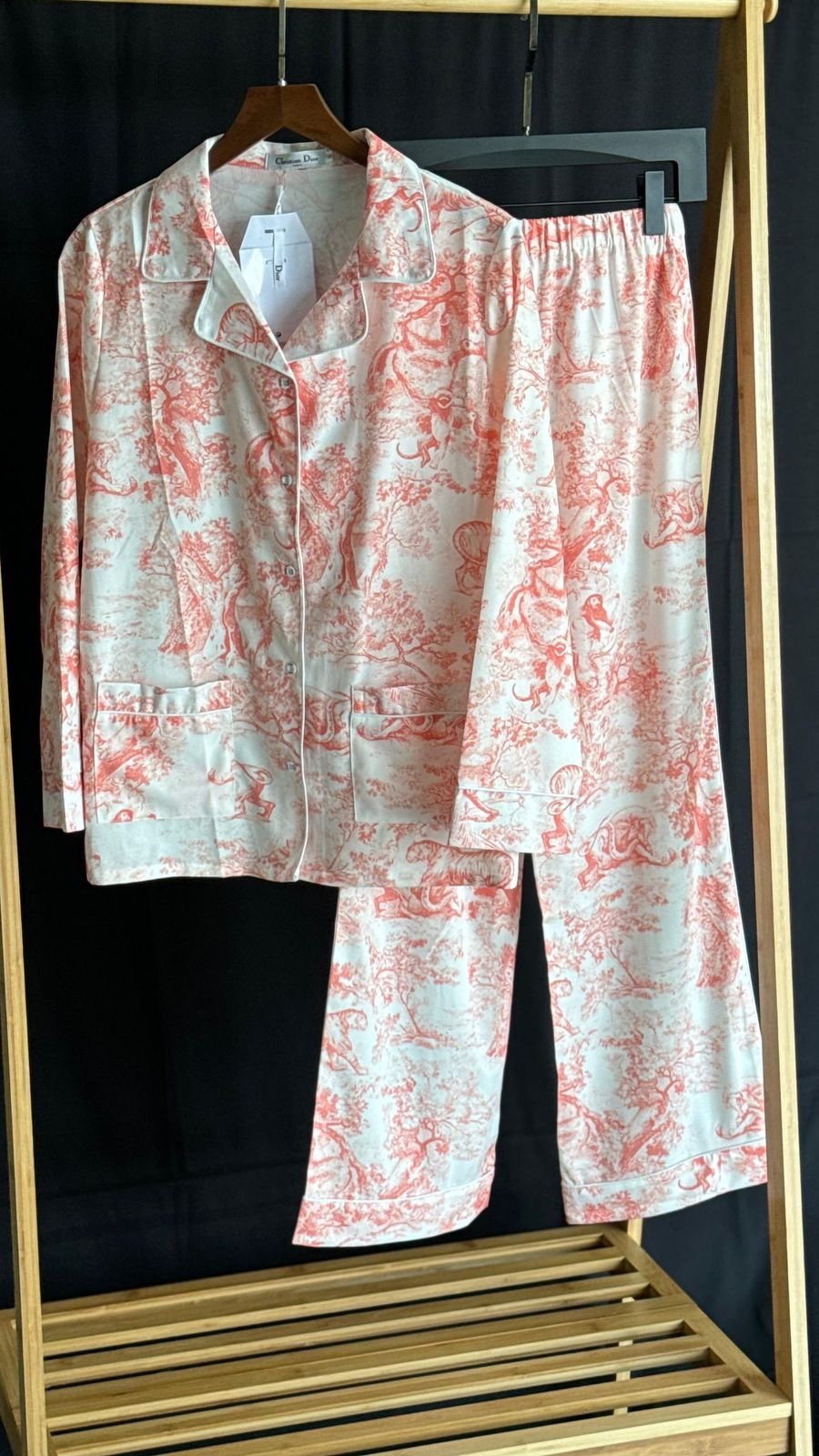 Indulge in the pinnacle of luxury and comfort with this exquisite DIOR floral print pajama set. Crafted for those who appreciate the finer details, this set embodies the timeless elegance and Parisian chic synonymous with the House of Dior.