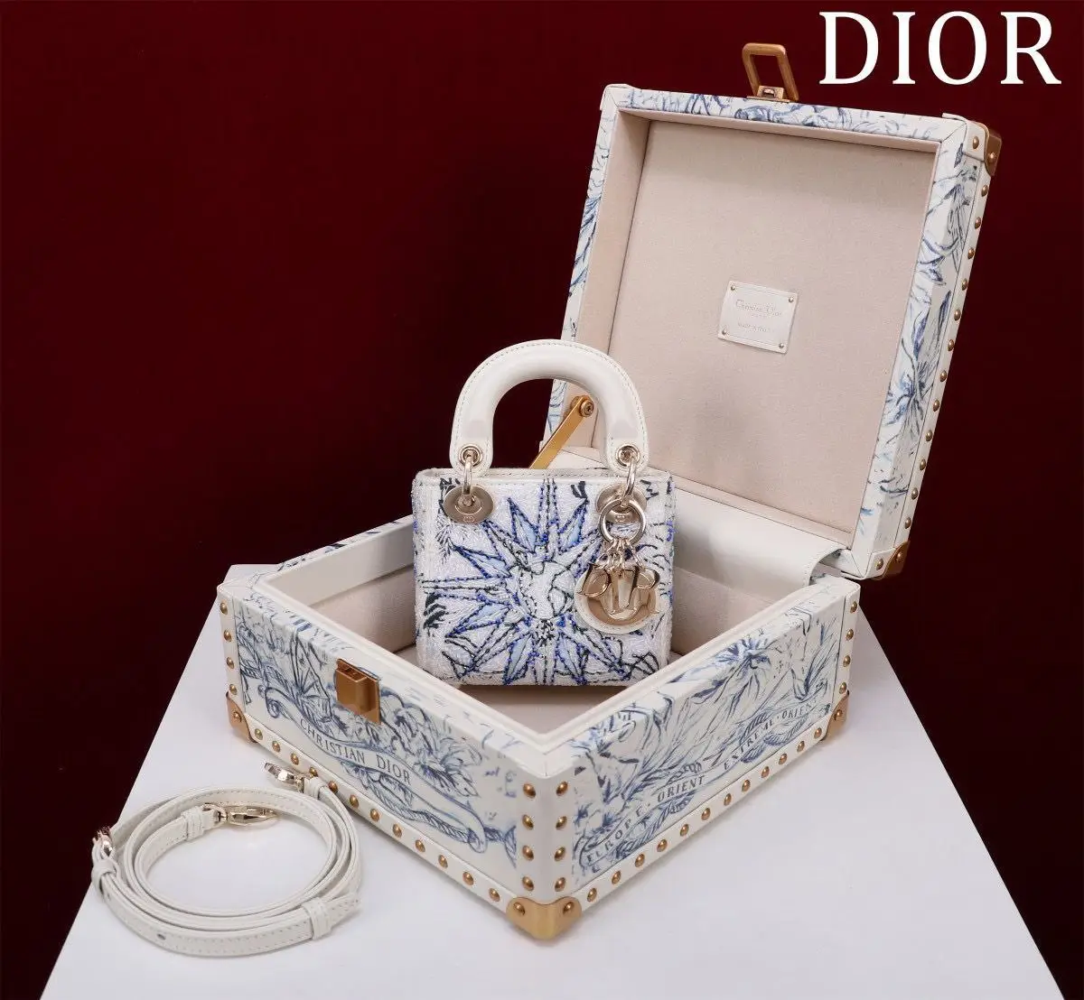 The Dior Lady Elephant Embroidered Bead Bag is a masterpiece of haute couture craftsmanship, blending timeless elegance with intricate artistry. This exquisite bag features a stunning embroidered elephant design, meticulously hand-beaded with luxurious detailing, set against the iconic Dior Cannage quilted leather. The structured silhouette, adorned with gold-tone hardware and a polished “Christian Dior” charm, exudes sophistication. The adjustable chain strap allows for versatile styling—wear it as a shoulder bag or crossbody for a chic statement. A true collector’s piece, this limited-edition bag is a celebration of Dior’s heritage and unparalleled artistry.