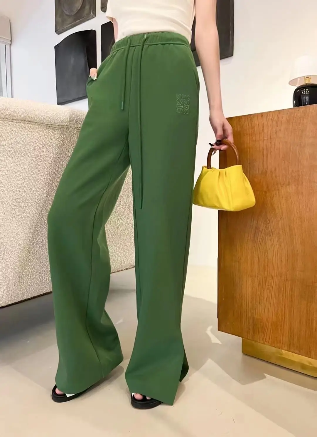 Be the first to review “LOEWE Olive Fleece Track Palazzo Pants”