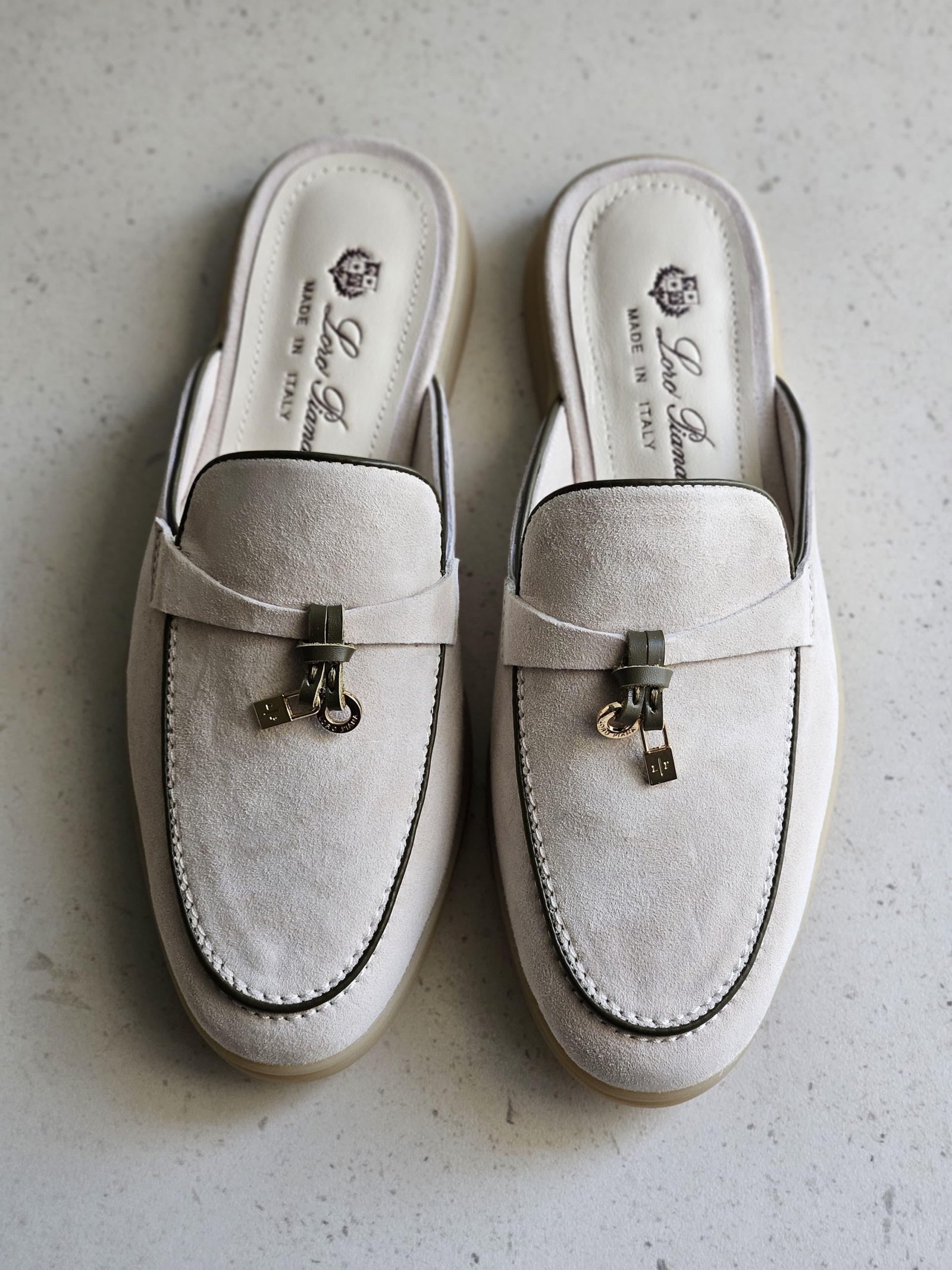 Each detail has been considered. The supple suede molds to your foot for a custom, cloud-like feel, while the delicate Charms—miniature versions of LORO PIANA’s iconic bag—add a touch of whimsical sophistication. This is super master quality, where exceptional materials meet flawless Italian craftsmanship, resulting in a timeless piece that transcends seasons and trends. Experience the quiet confidence that comes from wearing the best.