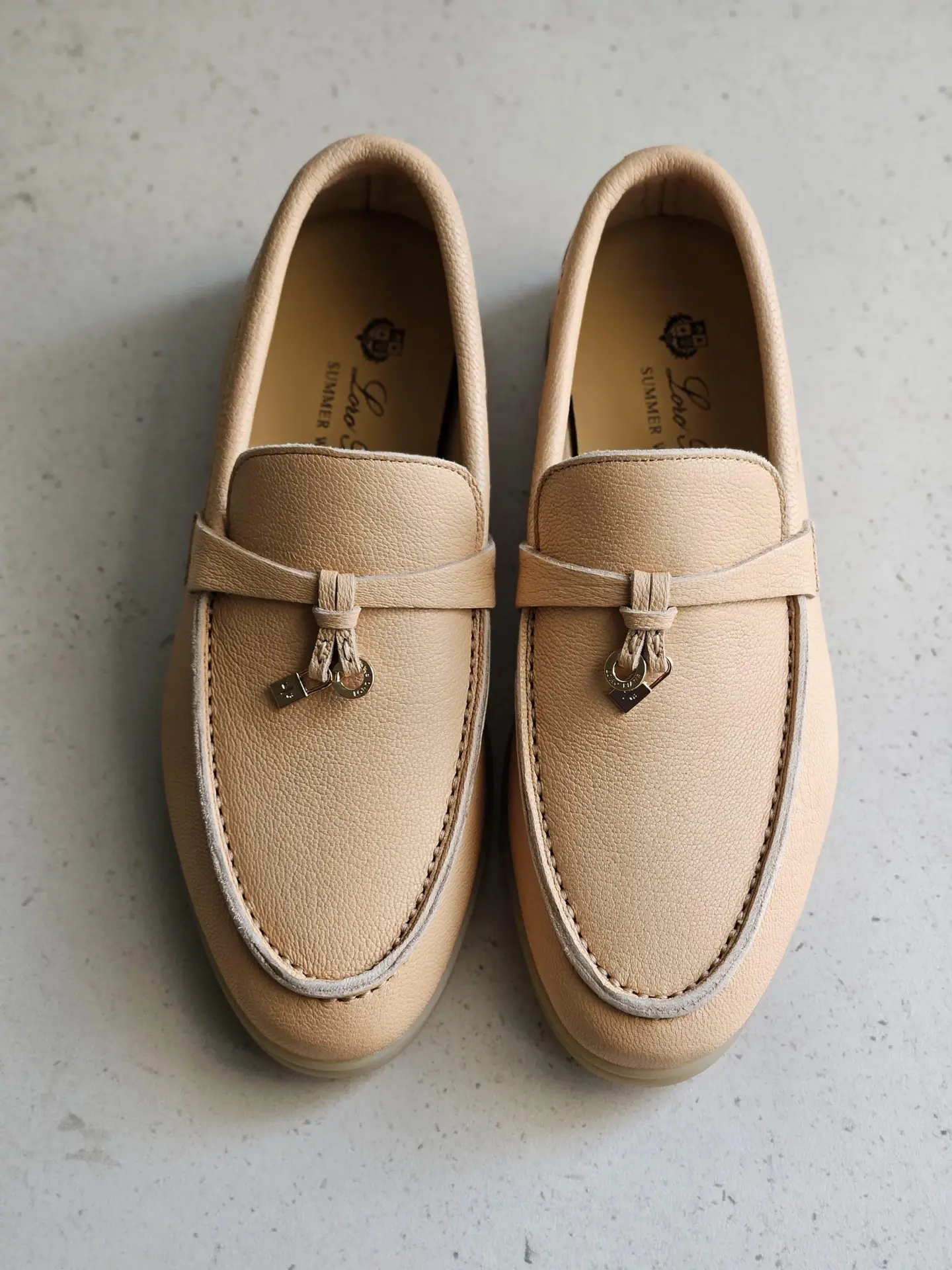 Adorning the front is the iconic Summer Charms pendant—a delicate, hand-finished token that evokes the serene joy of a summer’s day. This is more than a shoe; it is a testament to understated luxury and the art of Italian craftsmanship. Designed for the discerning individual who values quiet luxury, the Summer Charms Walk loafer transitions seamlessly from a leisurely weekend brunch to a sophisticated summer soirée.
