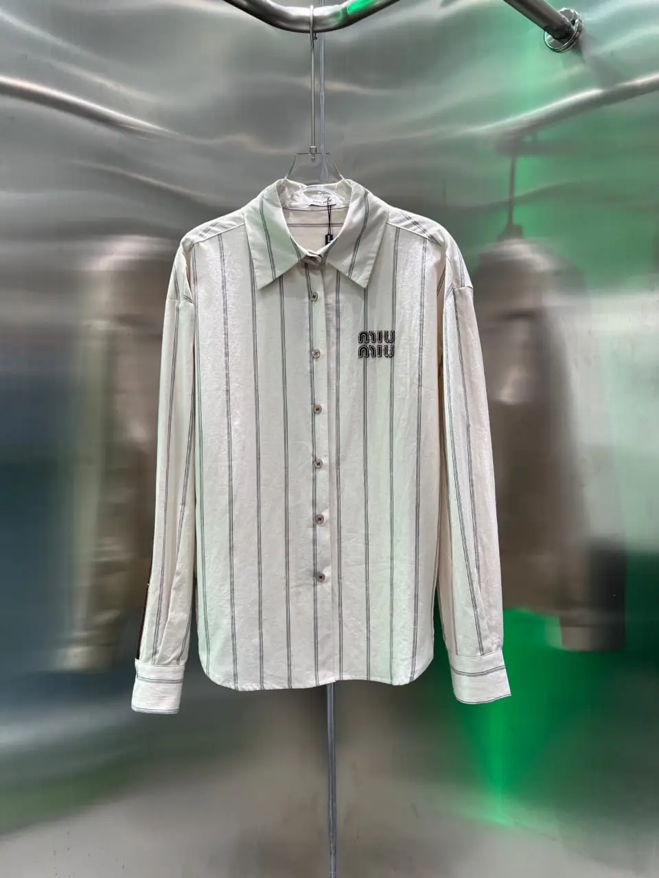 Be the first to review “MIU MIU Apricot Stripe Embroidered Cotton Top”