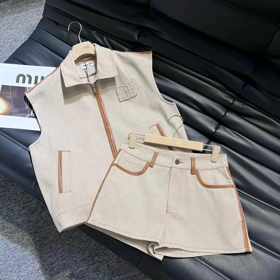 Embrace effortless luxury with this MIU MIU Beige Cotton Vest & Shorts Set , a quintessential expression of refined, relaxed style. Crafted from exceptionally soft, high-density cotton, this ensemble offers a tactile experience that defines “super master quality.” The fabric is meticulously selected for its perfect weight, ensuring a beautiful drape and enduring comfort.