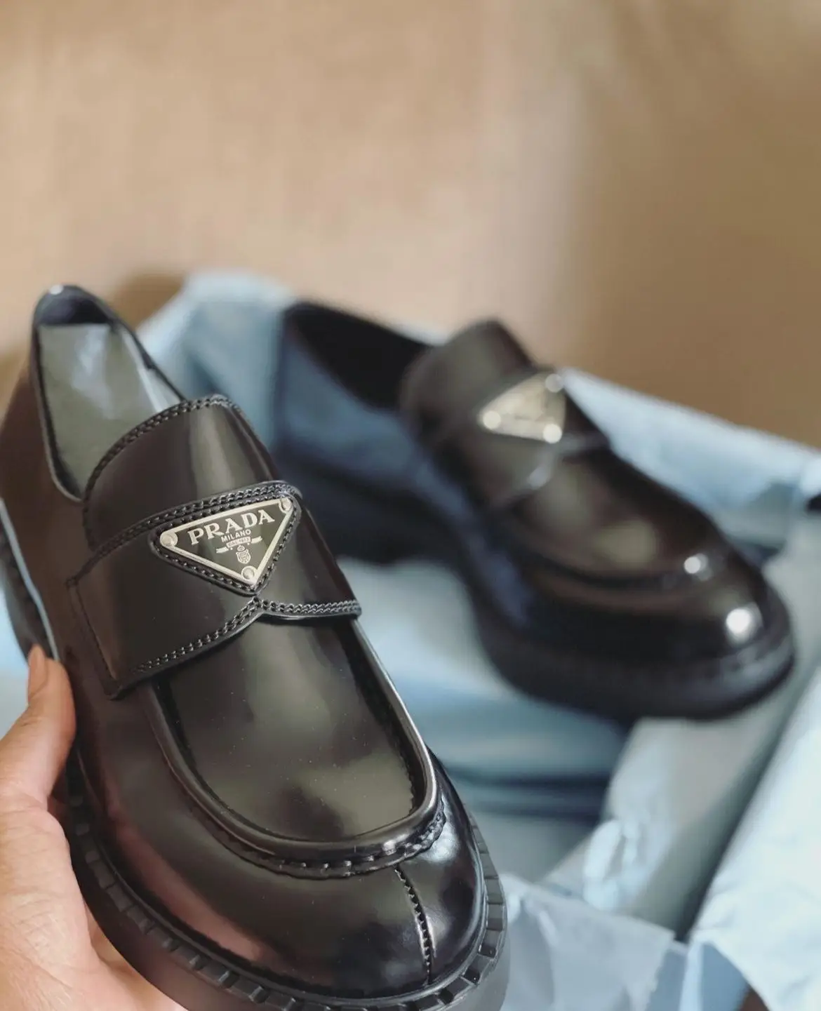 Featuring the iconic PRADA triangle logo plaque in a contrasting polished finish, these loafers make a quiet yet powerful statement. The versatile chocolate hue pairs seamlessly with everything from tailored trousers and denim to summer dresses, transitioning effortlessly from the boardroom to a weekend brunch.