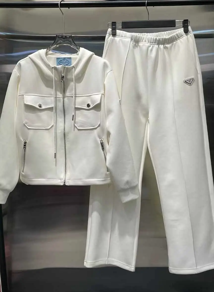 Constructed from a heavyweight, plush cotton-blend fabric, the jacket offers a cocoon of softness and warmth, making it your go-to piece for relaxed days and cool evenings. The iconic PRADA logo is elegantly applied, ensuring a statement of understated luxury.