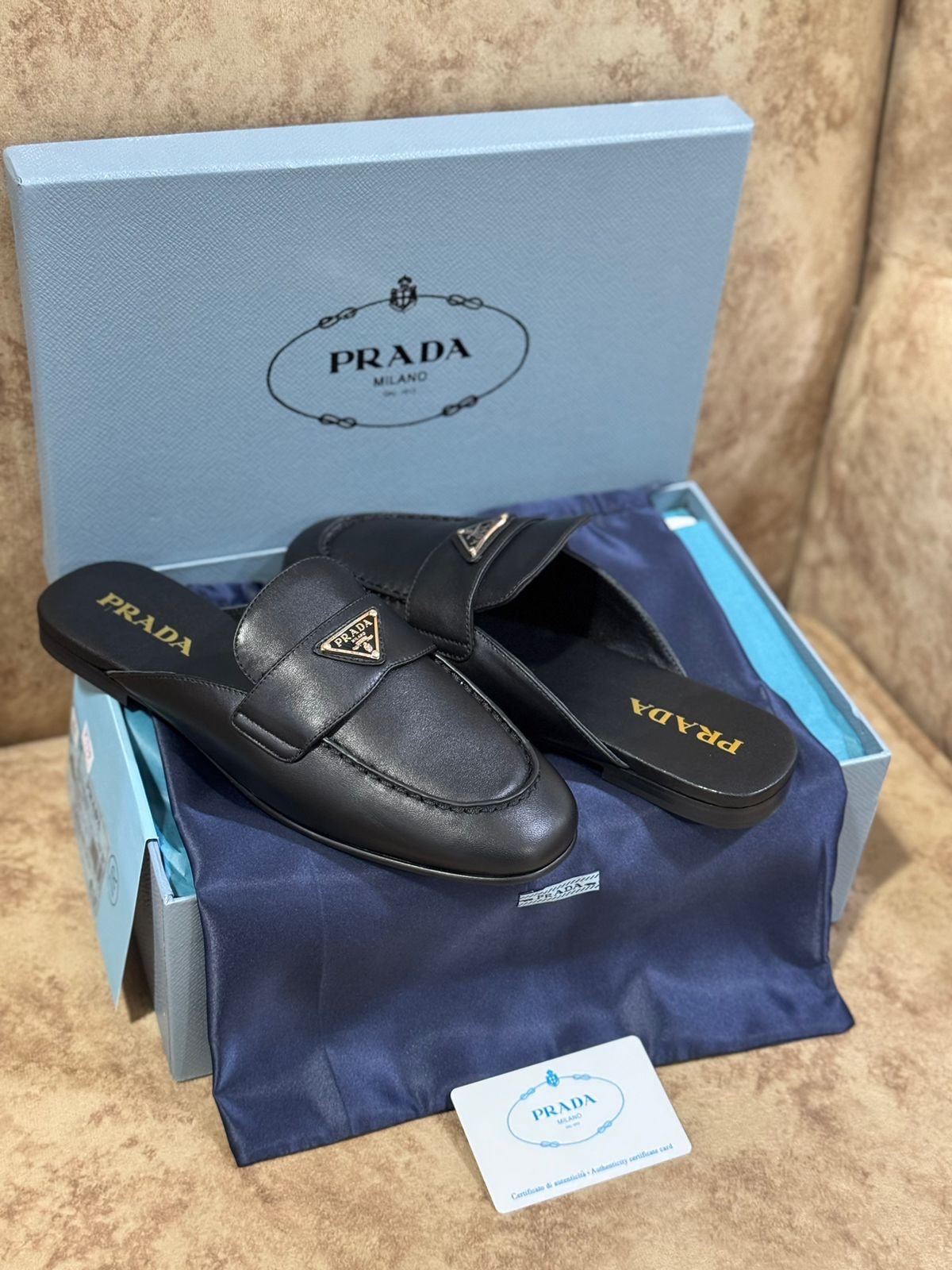 Indulge in the seamless blend of iconic design and superior comfort. The PRADA Leather Mule is not just a shoe; it is an investment in timeless style.