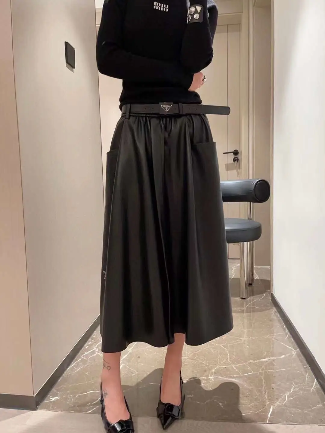 Step into a silhouette where architectural precision meets effortless grace. This PRADA Pleated Skirt with Belt is more than an item of clothing