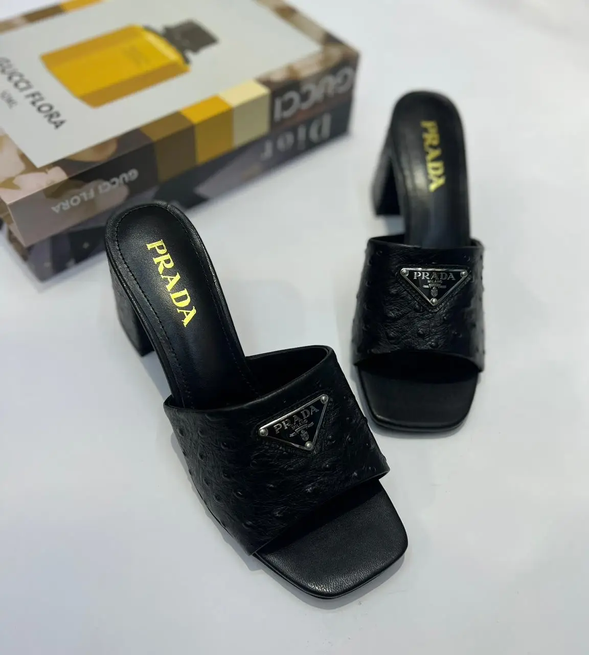 The sleek, almond-shaped toe and the minimalist sabots design offer effortless style, perfect for sliding on and off. Finished with the iconic PRADA enamel triangle logo at the heel, this piece is a definitive statement of discerning taste. The robust sole provides a comfortable, secure feel, making these sabots as practical as they are prestigious. Indulge in the pinnacle of Italian craftsmanship—a versatile masterpiece designed for the connoisseur of luxury.