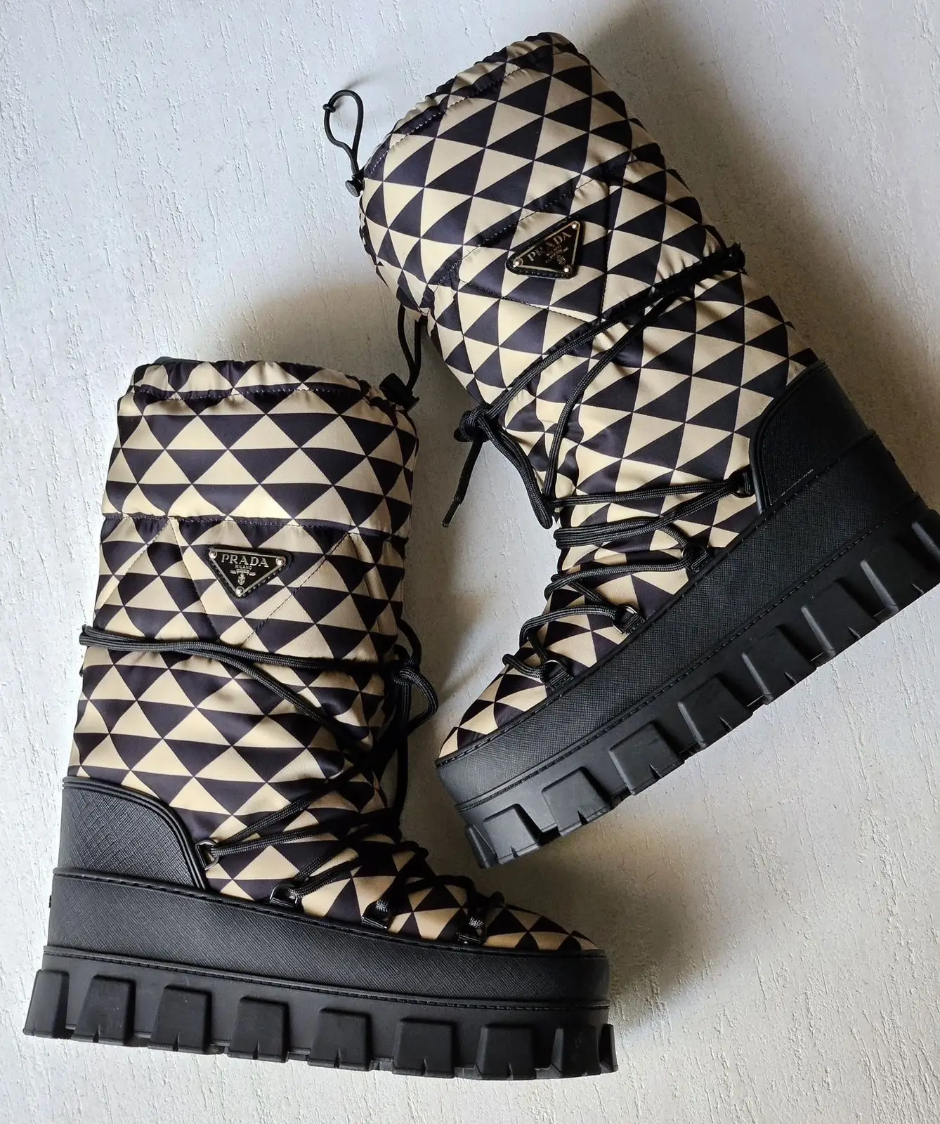 Step into a winter defined by fearless elegance. The PRADA Snow Boots are the culmination of master craftsmanship and technical innovation, designed for those who demand the highest standards from both their environment and their wardrobe. This is not merely a boot; it is a statement of uncompromising quality, built to conquer the most severe conditions while embodying the iconic, minimalist aesthetic of the house.