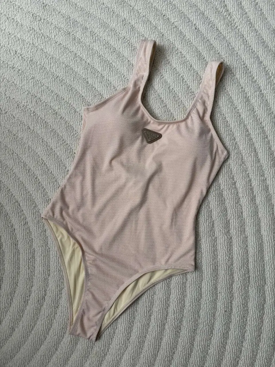 The design features the subtle yet unmistakable PRADA logo plaque, a signature of sophistication, elegantly positioned for a timeless appeal. Its carefully engineered silhouette provides impeccable support and flattery, making it the ultimate companion for a private yacht club, a secluded beach resort, or a serene poolside retreat.