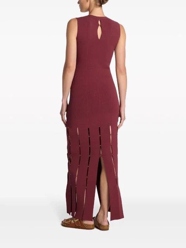 Draped from a sumptuously soft knit, the gown offers a fluid, body-skimming silhouette that feels as incredible as it looks. The sleeveless design and a subtle, graceful neckline create a timeless canvas for statement jewelry or a bold clutch.