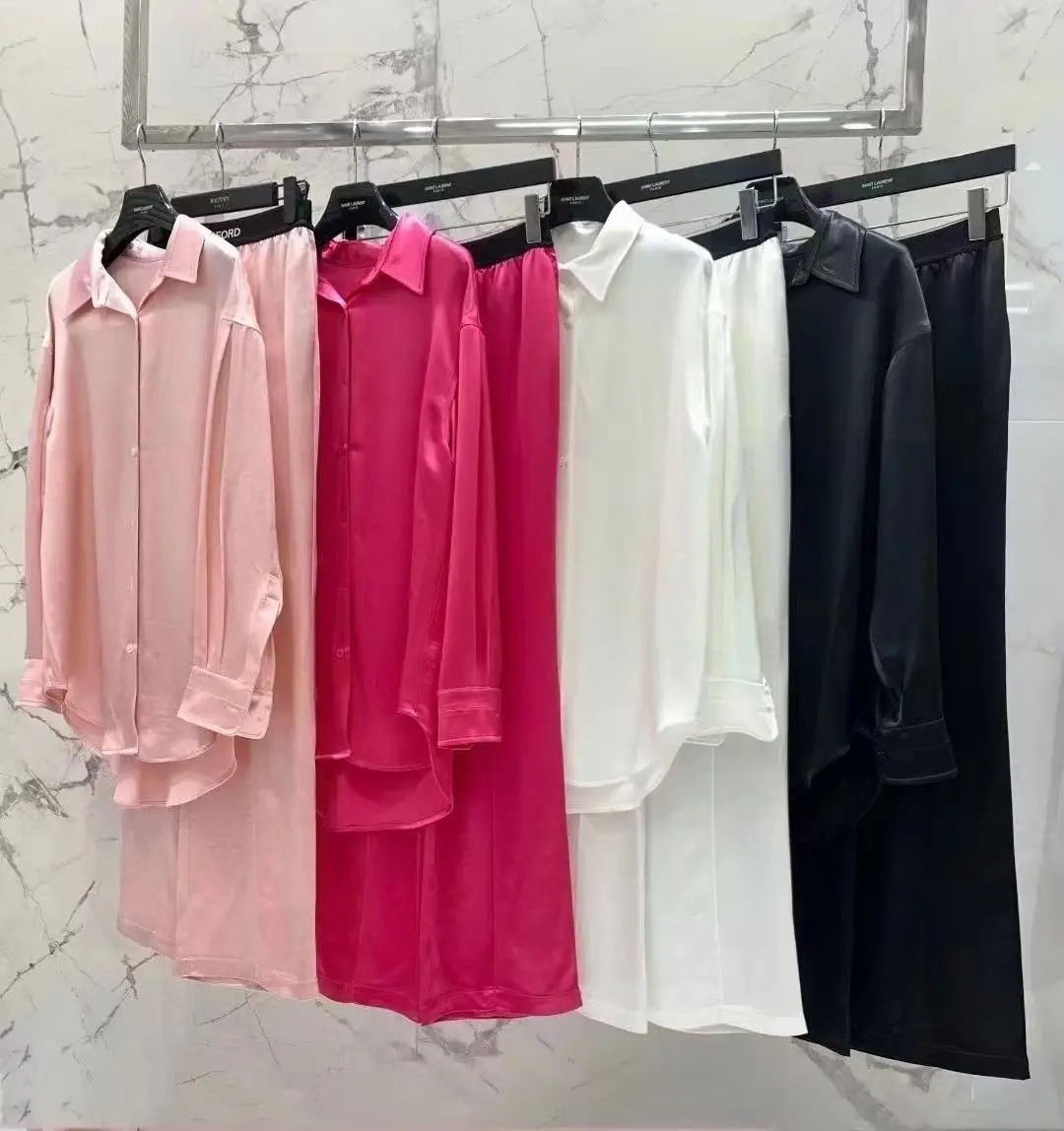 Embrace effortless luxury with the TOMFORD Satin Lounge Set, an embodiment of relaxed sophistication. This ensemble, comprised of an oversized shirt and matching wide-leg pants, is crafted from the finest grade satin, renowned for its impeccable weight, liquid drape, and a luminous sheen that signals true quality.
