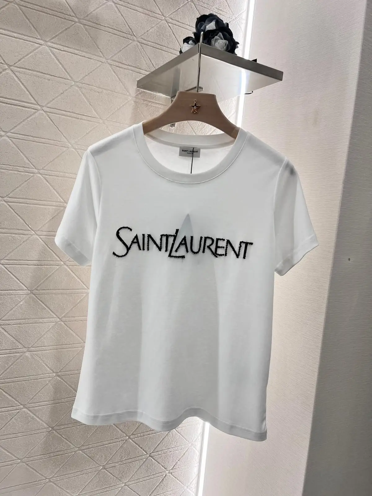 The minimalist design features a subtly elevated, authentic-style YSL logo, applied with state-of-the-art printing or embroidery techniques to ensure its iconic status remains flawless. It’s the ultimate foundation for any wardrobe, effortlessly pairing with tailored blazers, premium denim, or leather trousers.