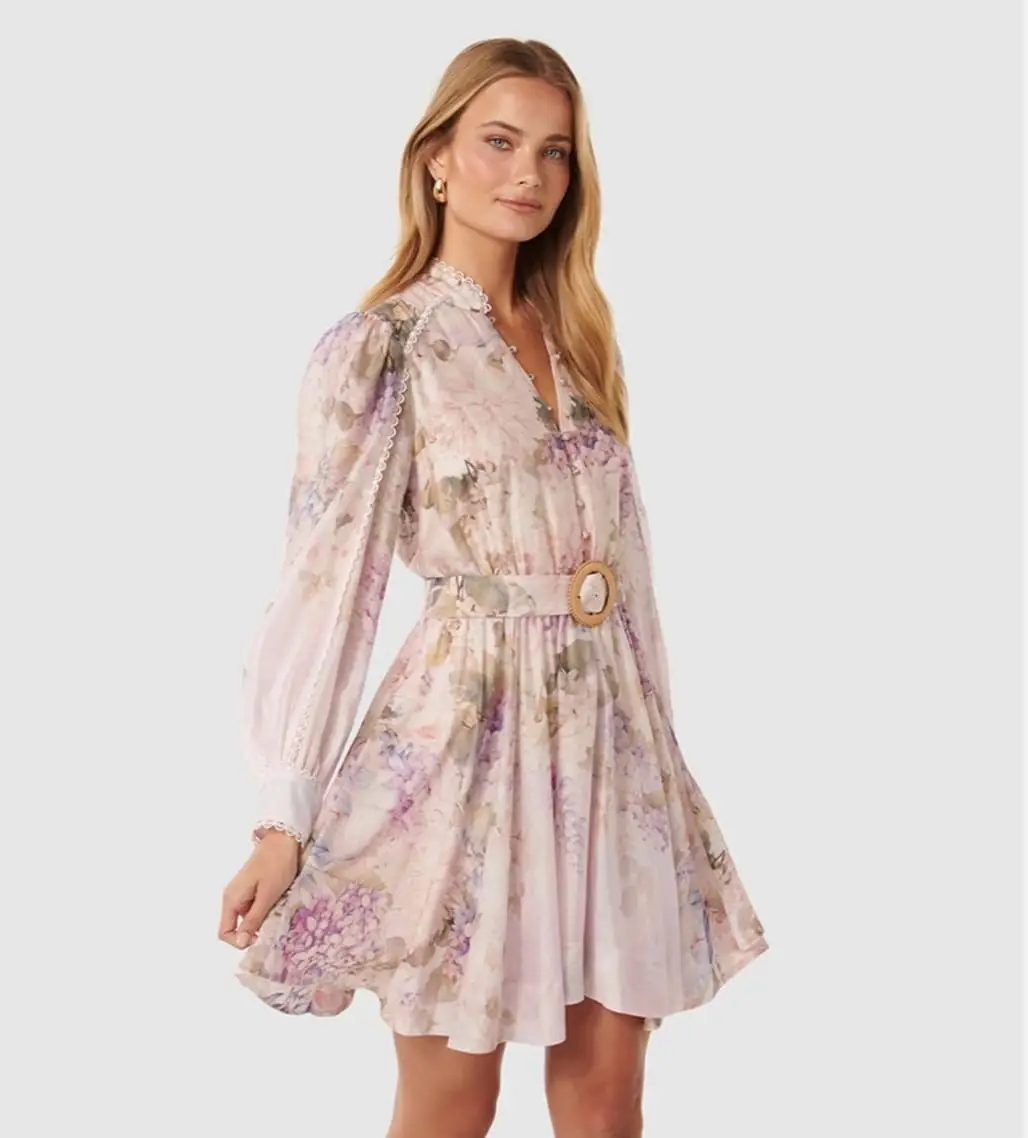 Embrace effortless elegance with the ZIMMERMAN Reiss Cari Floral Print Smock Dress, a piece that captures the very essence of bohemian luxury. Designed with an artist’s eye, this smock dress features an exquisite, vibrant floral print that blooms across a gracefully relaxed silhouette. The signature bishop sleeves, gently gathered at the cuff, add a touch of romantic volume and drama, creating a statement from every angle.